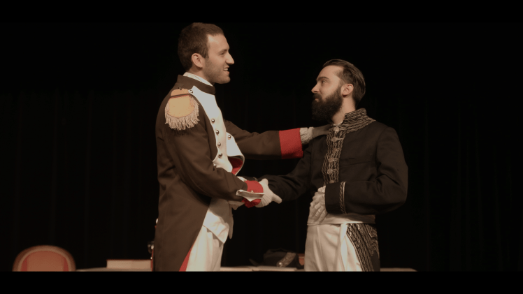 A l’heure où la figure historique de l’Empereur est controversée, il nous a semblé important de remettre en perspective les rêves et les actions d’un homme sans qui la France aujourd’hui serait bien différente. Il est facile de juger un homme sur ses actes seuls sans prendre en compte le contexte de l’époque et c’est ce que propose Jean d’Ormesson. La mise en scène, simple et épurée, mais toujours fidèle au cadre historique démontre ainsi au spectateur que les mots, comme les écrits, peuvent parfois rester au lieu de s’envoler. Les propos de Napoléon, recueillis dans ses correspondances, dans ses citations, font face au texte créé de Cambacérès que Jean d’Ormesson adapte aux circonstances de cette conversation imaginaire, mais qui, dans notre vision, aurait très bien pu avoir lieu selon la mise en scène ainsi montrée.